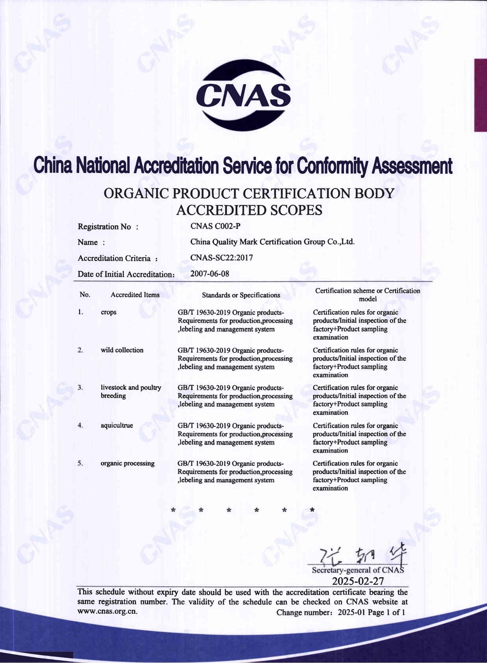 有機產品認可證書