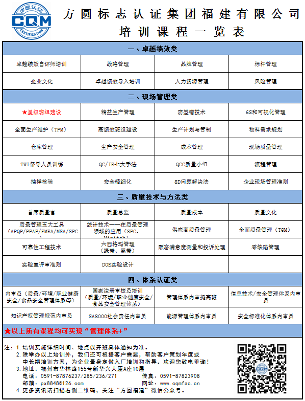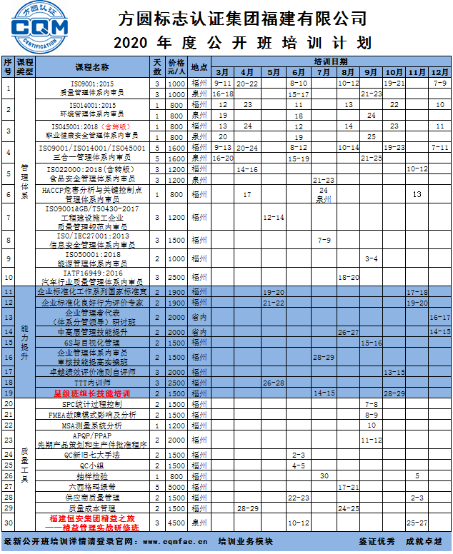 方圓福建2020年公開班培訓計劃(1月-12月)