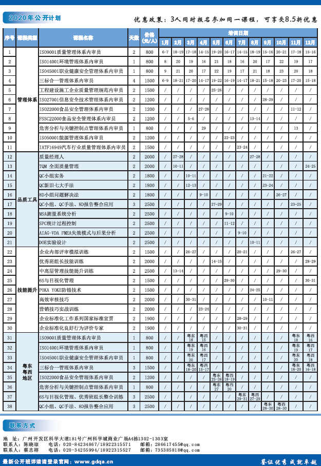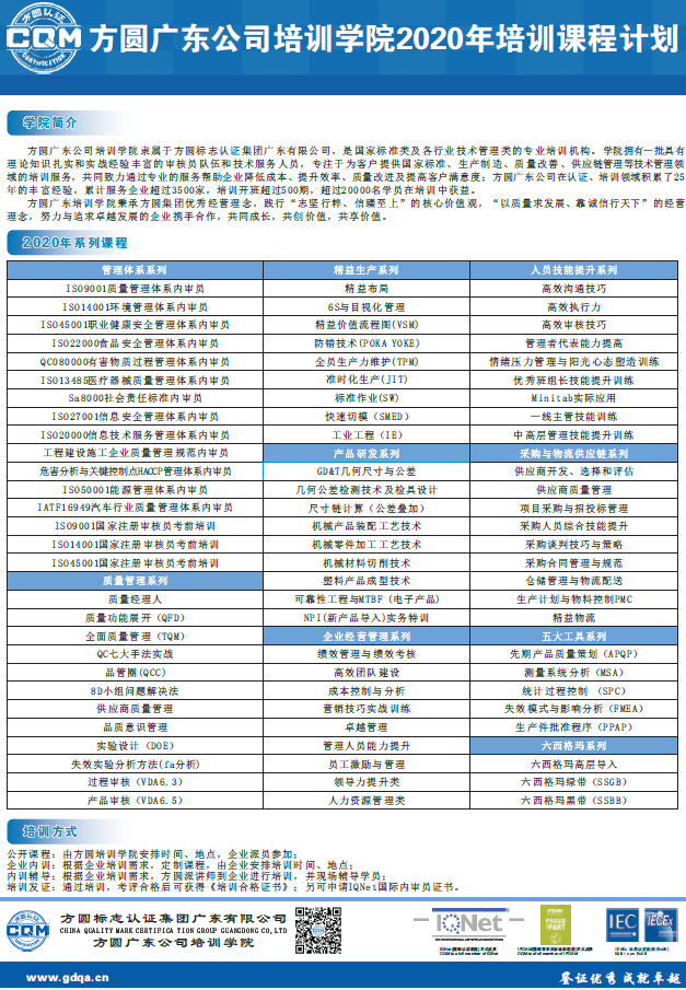 方圓廣東公司培訓學院2020年培訓課程計劃