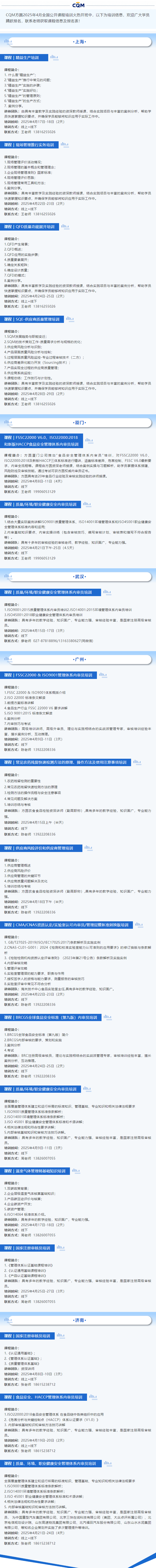 CQM方圓2025年4月全國公開課程培訓計劃