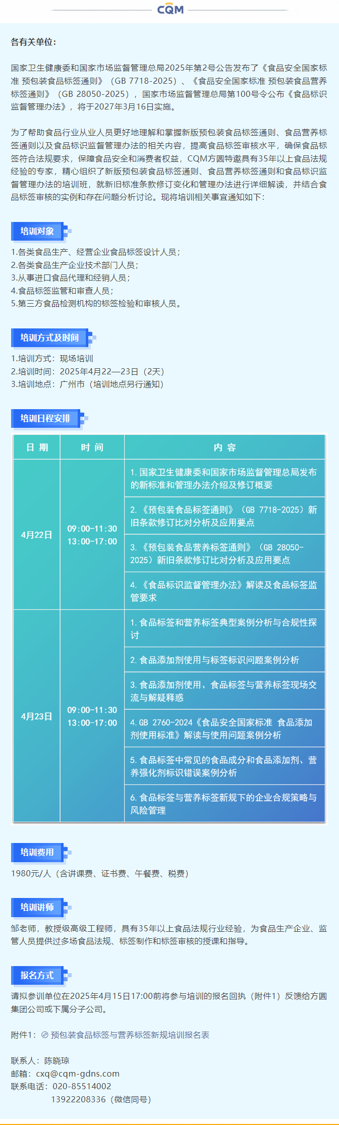 關于舉辦《預包裝食品標簽與營養標簽新規深度解讀及標識監管要點培訓》的通知