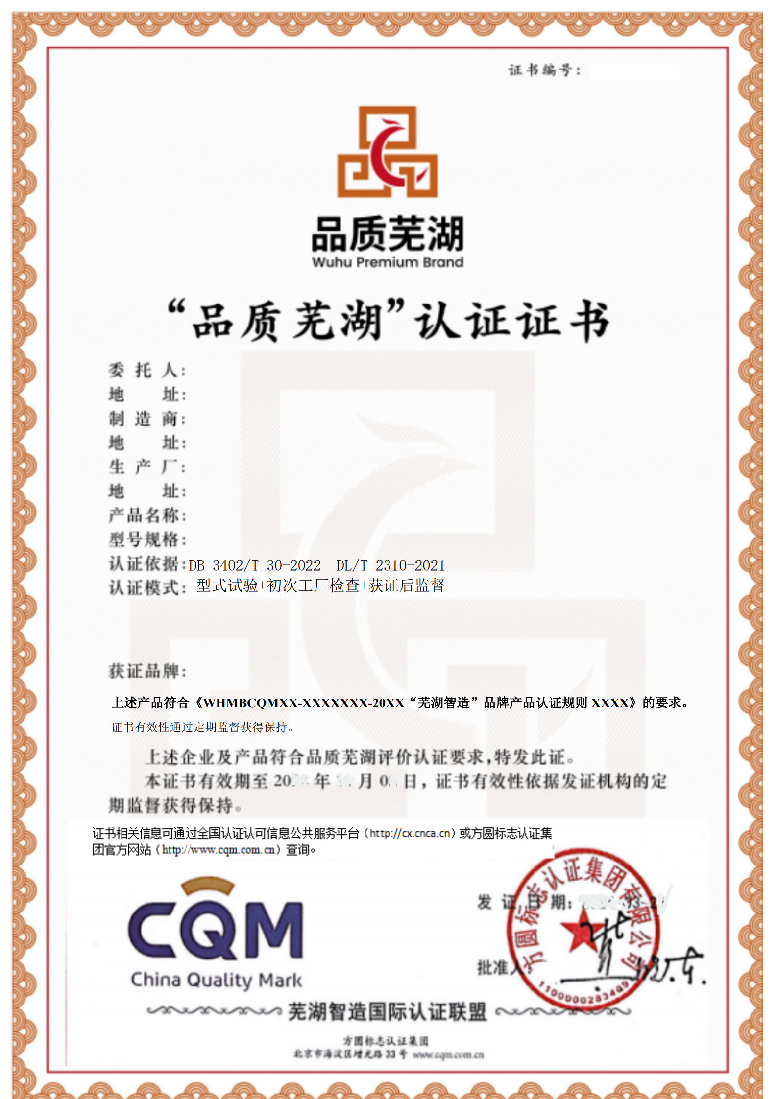 認(rèn)證標(biāo)志的基本圖案由中文“ 品質(zhì)蕪湖 ”字樣 、英文“Wuhu Premium Brand ”字樣和“ 品 ”字、“鳩鳥 ”圖案組成。圖案式樣和 標(biāo)準(zhǔn)色共分為三種。